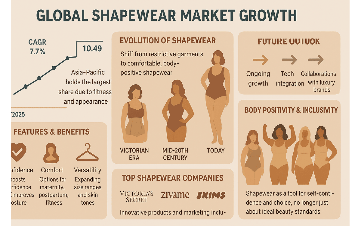 Growth drivers include rising health awareness, increased participation in fitness activities, and demand for recovery-oriented apparel. Compression-based shapewear is increasingly marketed for circulation support and fatigue reduction, expanding its value proposition beyond aesthetics.